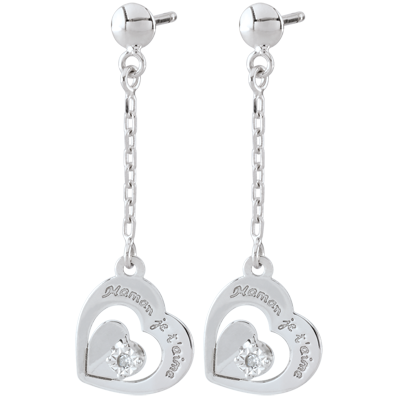 Kolczyki Mamo, Kocham Cię - złoto białe 9-karatowe