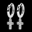 Poznaj kolczyki koła z białego złota 18 karat z zawieszkami w kształcie krzyża wysadzanymi diamentami. Biżuteria łącząca elegancję i symbolikę w nowoczesnym stylu.