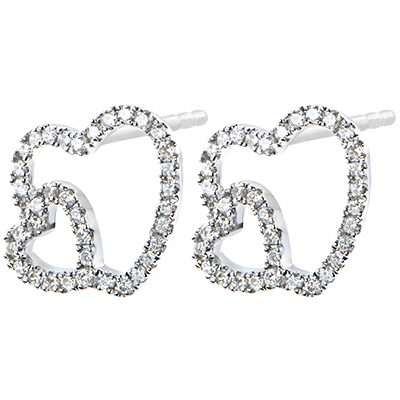 Kolczyki Obfitość – Podwójne serce – białe złoto 18-karatowe z diamentami