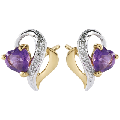 Kolczyki Ouaki - ametyst - złoto białe i złoto żółte 9-karatowe