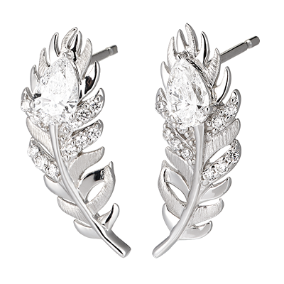 Kolczyki Altesse to kwintesencja wyrafinowanej elegancji. Zostały wykonane z 9-karatowego białego złota i przepięknie ozdobione 24 syntetycznymi diamentami, w tym 2 diamentami w kształcie gruszki o masie 0,25 karata, które efektownie rozświetlają się w świetle. Każdy detal tych kolczyków odzwierciedla splendor piór, znak rozpoznawczy kolekcji Panache.