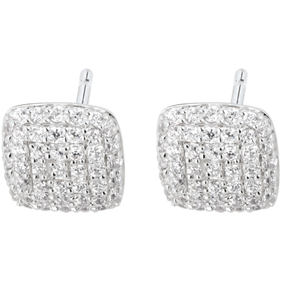 Kolczyki jak dwie poduszeczki wysadzane diamentami pasują do każdego stroju.