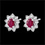 Na każdym sztyfcie owalny syntetyczny rubin stanowi środek margerytki z białego złotka z płatkami wysadzanymi syntetyczne diamenty.…