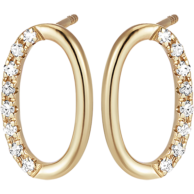 Kolczyki z żółtego złota w kształcie owalu, który do połowy został subtelnie ozdobiony diamentami. Minimalistyczny model łączący w sobie piękno i emocje.