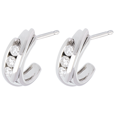 Kolczyki z trzema diamentami z zachodzącymi na siebie ramionami - złoto białe 18-karatowe - 0,3 karata - 6 diamentów