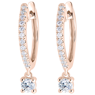Kolczyki typu kreolki wysadzane do połowy diamentami Świeżość - Mały wisiorek - 9 karatowe różowe złoto i diamenty