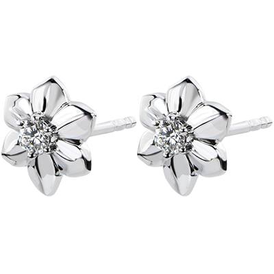 Diament otoczony 6 płatkami w delikatnych i kobiecych kolczykach sztyftach Dalia.