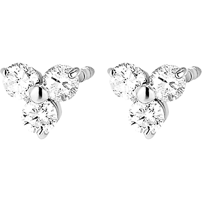 Kolczyki z białego złota wysadzane 3 diamentami niczym konstelacja gwiazd. Delikatna i pełna blasku biżuteria, doskonale nadaje się do noszenia na co dzień.