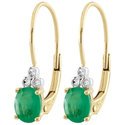 Kolczyki Wyszukane - szmaragdy i diamenty - złoto żółte 9-karatowe