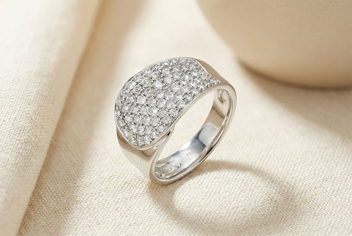 Pierścionek Język z diamentami - złoto białe 18-karatowe