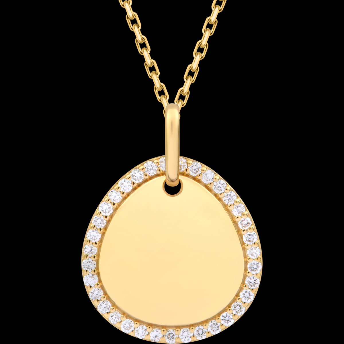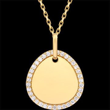Subtelny, lśniący medalik z żółtego złota 9-karatowego, otoczony diamentami. Doskonały jako spersonalizowany prezent na chrzest lub symboliczny upominek.Średnica: 14 × 14,5 mmWykończenie: Polerowane żółte złotoMożliwość personalizowanego grawerunku na odwrocieDostarczany w eleganckim pudełku, gotowy na prezent