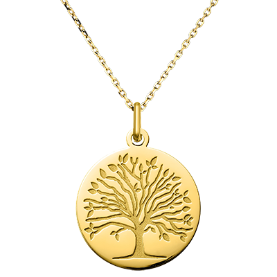 Ten medalik przedstawia precyzyjnie wygrawerowane Drzewo Życia, symbolizujące siłę, wzrost i głębokie korzenie, które odżywiają istnienie. Projekt eksponuje drzewo z rozłożonymi gałęziami i delikatnymi liśćmi, będące metaforą ewolucji i związku między naturą a ludzkością. Subtelna wypukłość dodaje tej ozdobie estetycznej głębi, pozostając jednocześnie subtelną i elegancką. Ten medalik to potężny i symboliczny prezent, idealny do celebrowania życia, więzi rodzinnych i osobistego rozwoju.