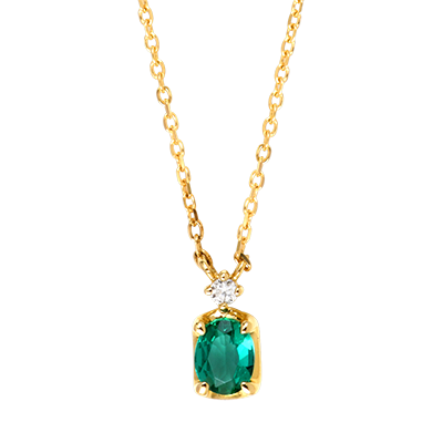 RAJSKI PTAK NR 27Naszyjnik - Żółte złoto 375 - Diament laboratoryjny, Syntetyczny szmaragd ID : 897