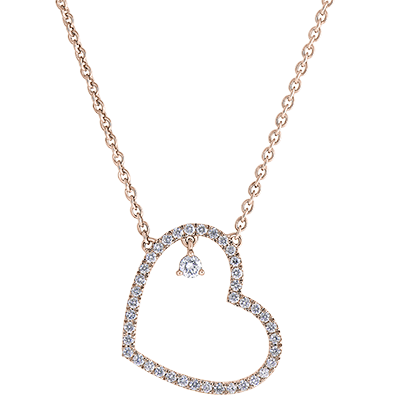 Delikatne serduszko z różowego złota wysadzane brylantami, w którego centrum znajduje się diamentowy charms, który mieni się przy każdym ruchu naszyjnika. Z łańcuszkiem o długości 45cm i kółkiem do regulacji obwodu do 42cm.