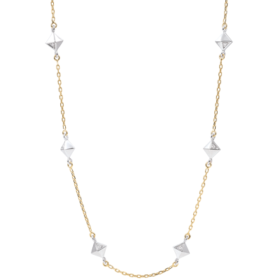 Wyszukane piramidy z jedną fasetą wysadzaną diamentami, inspirowane nieoszlifowanymi diamentami, są eleganckie i nowoczesne.