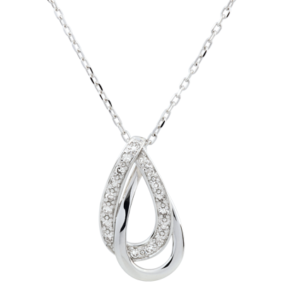 Dwie splecione krople z wdziękiem zawieszone na łańcuszku z białego złota.