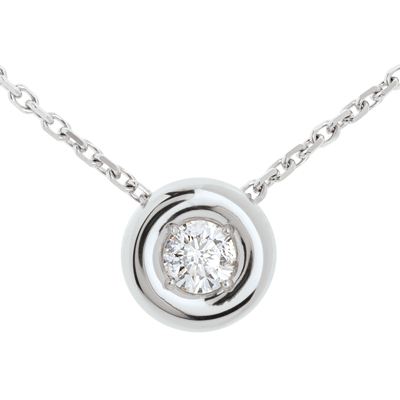 Okrągły naszyjnik z diamentem zatopionym w sercu kielicha z białego złota.