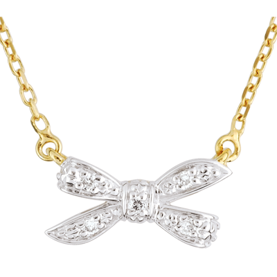 Węzeł ze złota i diamentu zawieszony z jednej i z drugiej strony na łańcuszku z żółtego złota.