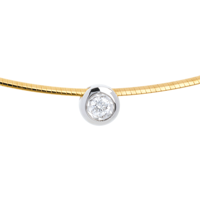 Sztywny naszyjnik zwieńczony diamentem w delikatnym i współczesnym wydaniu.