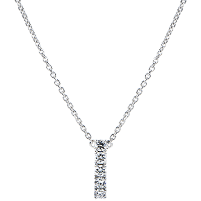 Kaseta z 5 diamentami na łańcuszku o długości 42 cm (+3 cm przedłużki). Delikatna i dyskretna zawieszka zatopiona we wgłębieniu szyi.
