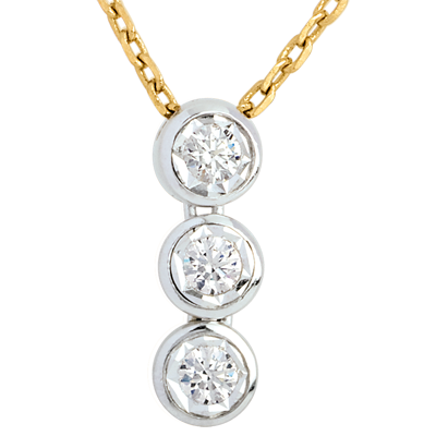 Łańcuszek delikatnie podkreślony trzema diamentami w pionowej kompozycji.