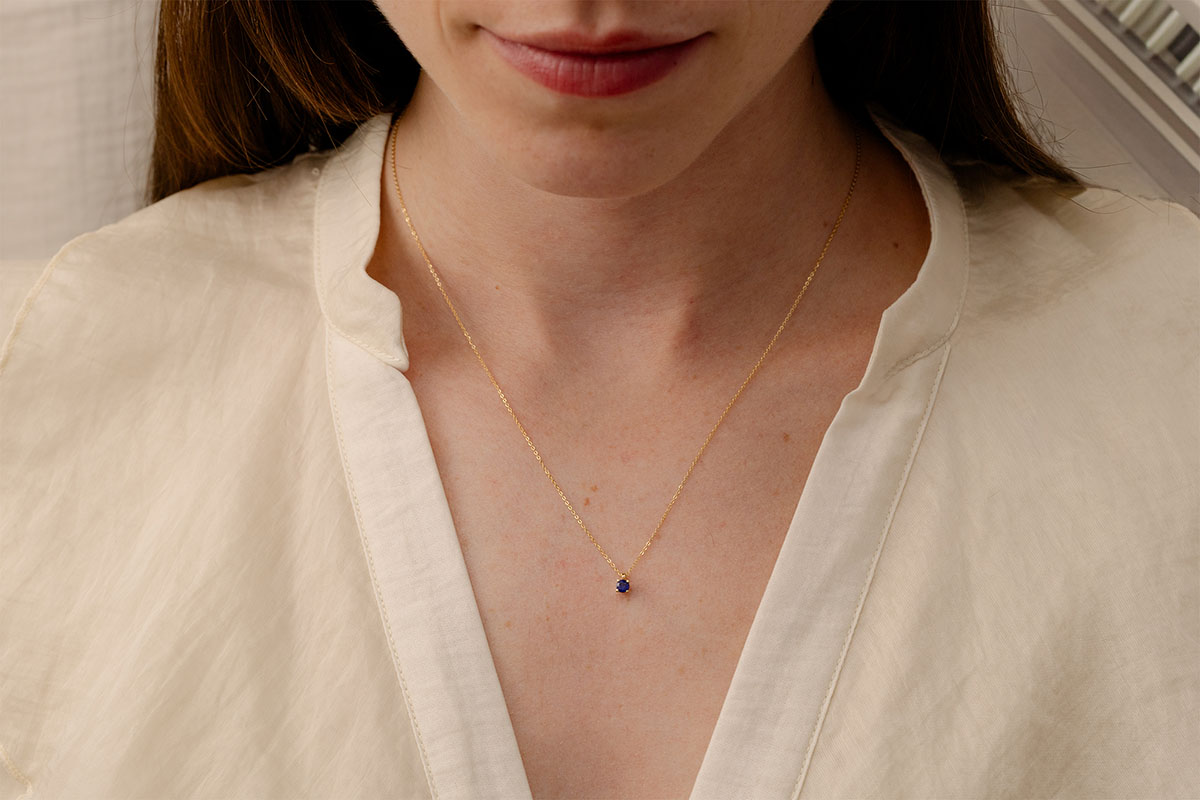 Piękno i elegancja szafiru umieszczonego na łańcuszku z żółtego złota. Klasyczna, ponadczasowa biżuteria z barwnym akcentem.