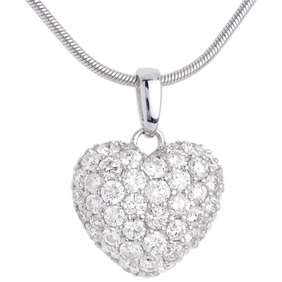Blask namiętności w niepowtarzalnym i niezbędnym naszyjniku w kształcie serca wysadzanym diamentami.