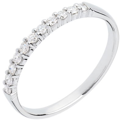 Obrączka z białego złota 18-karatowego w połowie wysadzana diamentami - krapy - 11 diamentów