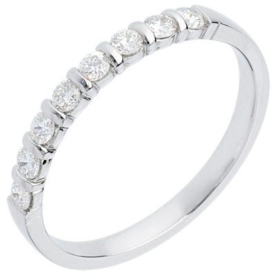 Obrączka z białego złota 18-karatowego w połowie wysadzana diamentami - oprawa sztabkowa - 0,3 karata - 8 diamentów