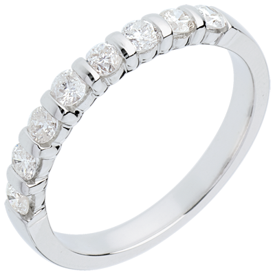 Obrączka z białego złota 18-karatowego w połowie wysadzana diamentami - oprawa sztabkowa - 0,5 karata - 8 diamentów