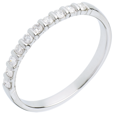 Obrączka z białego złota 18-karatowego w połowie wysadzana diamentami - oprawa sztabkowa - 10 diamentów