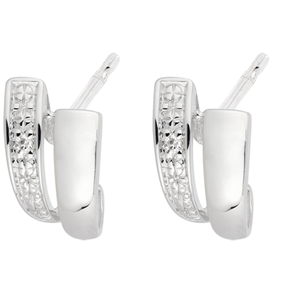 Kolczyki w kształcie koła wykonane z dwóch pasków białego złota łączących prostotę z nowoczesnością.