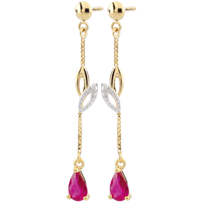 Kolczyki Evina - złoto białe i żółte 9-karatowe oraz rubiny