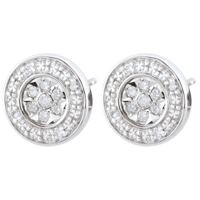 Dwa połączone koła wysadzane diamentami w klasycznej odsłonie do noszenia na każdą okazję.
