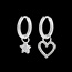 Pojedynczy kolczyk w kształcie koła ozdobiony wisiorkiem z białego złota w kształcie gwiazdki wysadzanym połyskującymi diamentami. Średnica wisiorka 3,1mm.
