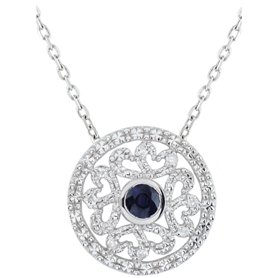 Zawieszka Kiona z białego złota 9-karatowego - diamenty i szafir