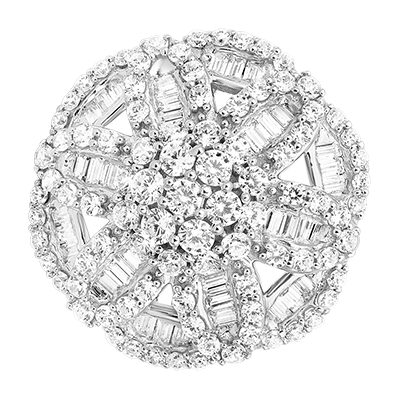 Pierścionek Cristal to prawdziwe dzieło sztuki, pięknie inkrustowane syntetycznymi diamentami o różnych szlifach. Jego wzór nawiązuje do eleganckiej złożoności kryształków lodu, olśniewająco odbijając światło.