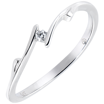 Oprawa z naturalnych krzywizn i motywów roślinnych jak delikatna gałązka z pączkiem z diamentu. Pierścionek wyraża delikatną i wrażliwą kobiecość.