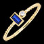Pierścionek Maelis łączy prostokątny szafir syntetyczny z okrągłym diamentem syntetycznym, osadzonymi na skręcanej obrączce z żółtego złota 9 karatów. Ten graficzny duet łączy królewski blask z dyskretną nowoczesnością.