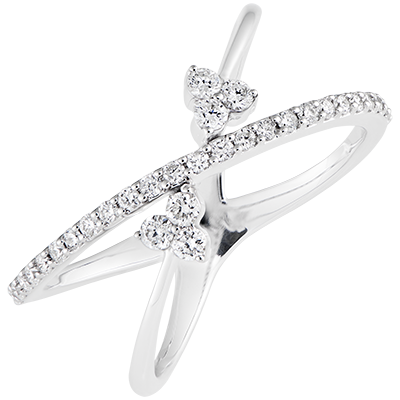 Lekka i współczesna kompozycja, która opiewa palec, składa się z 2 elips – białego złota i białego złota wysadzanego diamentami.
