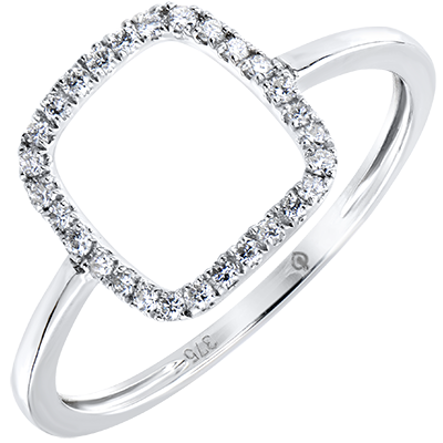 Graficzny i minimalistyczny pierścionek wysadzany diamentami ażurowo ozdabiającymi palec. Model, któremu z rozmysłem nadano nowoczesny i lekki charakter, będący wyrazem czystej kobiecości.