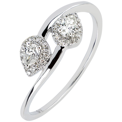 Pierścionek Obfitość – Ty i Ja Diamenty o szlifie gruszki – białe złoto 9-karatowe z diamentami