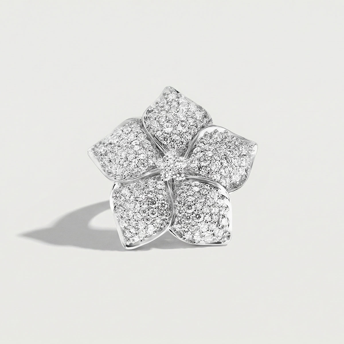 KREACJA « ATELIER » NR 8Pierścionek Kwiaty - Białe złoto 750 - Diament laboratoryjny ID : 1653