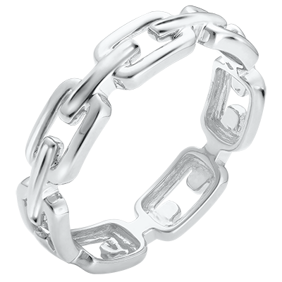 Pierścionek Wschodnie spojrzenie - Kubańskie ogniwo średnie - 18 karatowe białe złoto