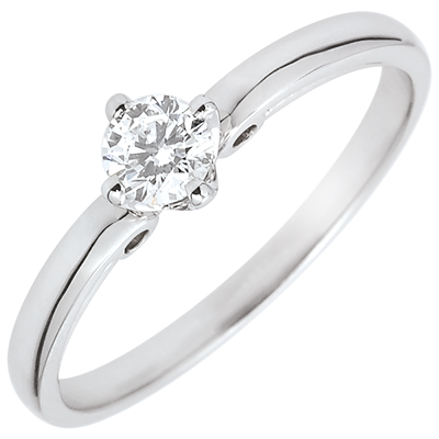 Pierścionek Bluszczowy Guzik z jednym diamentem - 0,2 karata - złoto białe 18-karatowe