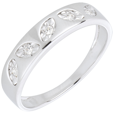 Pierścionek Drobne Liście z białego złota 18-karatowego i 5 diamentów