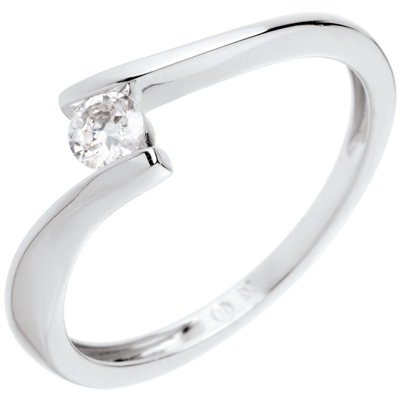 Pierścionek Drogocenne Gniazdo z jednym diamentem - Apostrof - złoto białe 18-karatowe - diament 0,16 karata