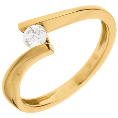 Pierścionek Drogocenne Gniazdo z jednym diamentem - Apostrof - złoto żółte 18-karatowe - diament 0,2 karata