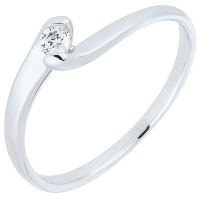 Pierścionek Drogocenne Gniazdo z jednym diamentem - Wieczna Pasja - złoto białe 9-karatowe - 0,08 karata