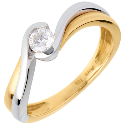 Pierścionek Drogocenne Gniazdo z jednym diamentem – Wodnik - diament 0,21 karata - złoto białe i złoto żółte 18-karatowe